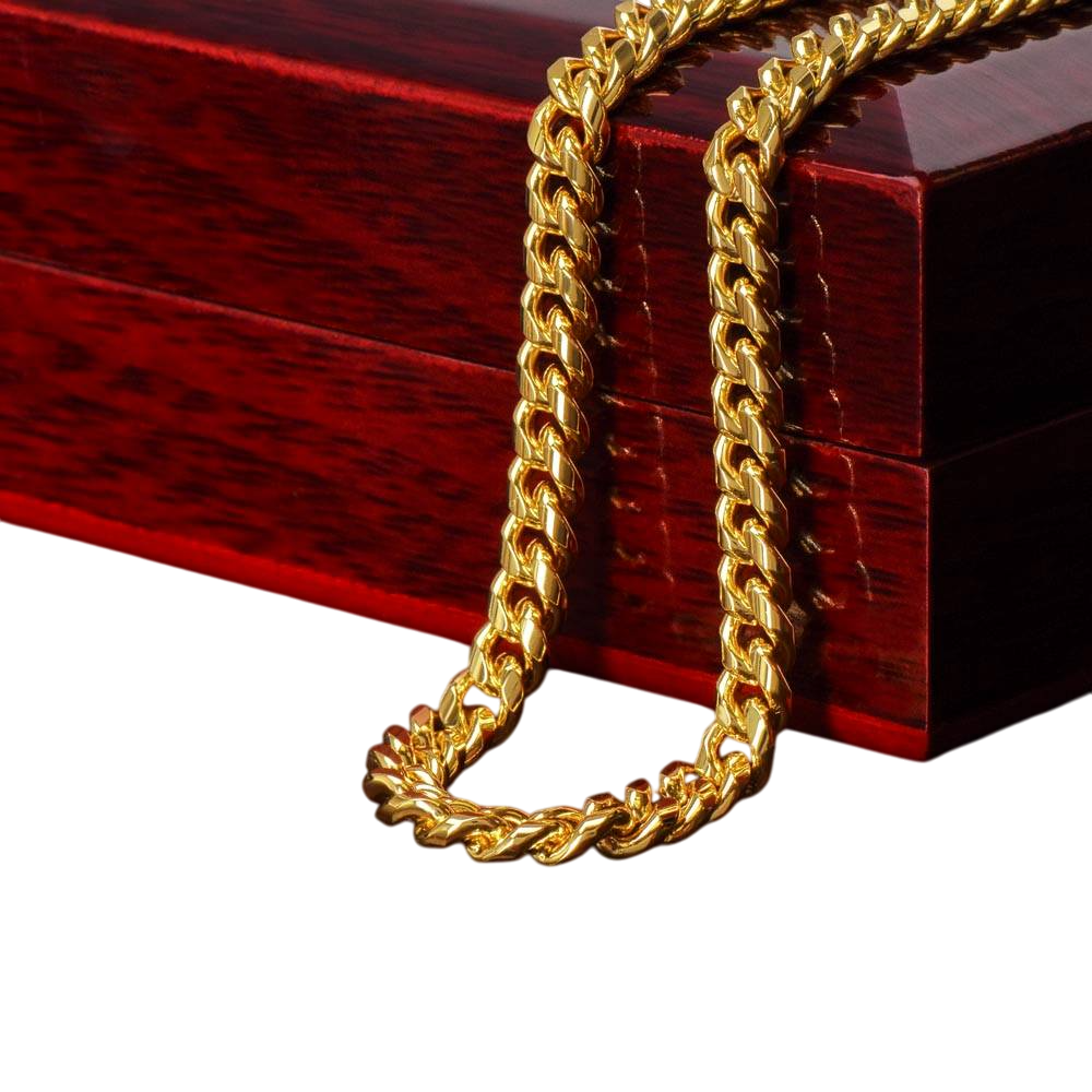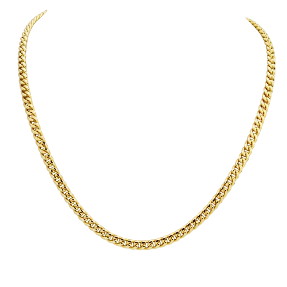 Plated in 18K Yellow Gold over durable stainless steel, this Cuban link chain commands attention with subtle luxury. Adjustable and weighty, it's a standout piece made to complement any wardrobe with distinction.